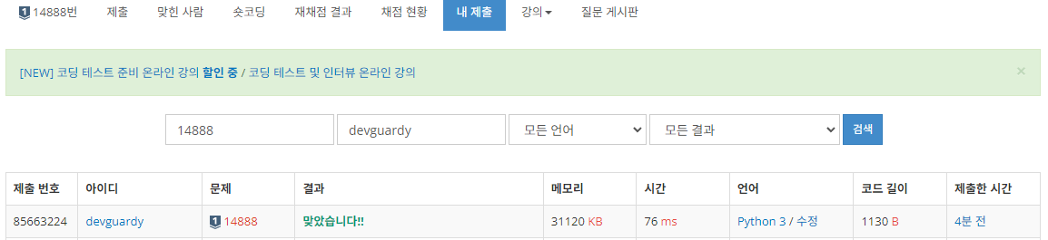 | 백준 스타트와 링크 [14889] 파이썬(Python) 코드 + 해설 (0) | 2024.10.27 |