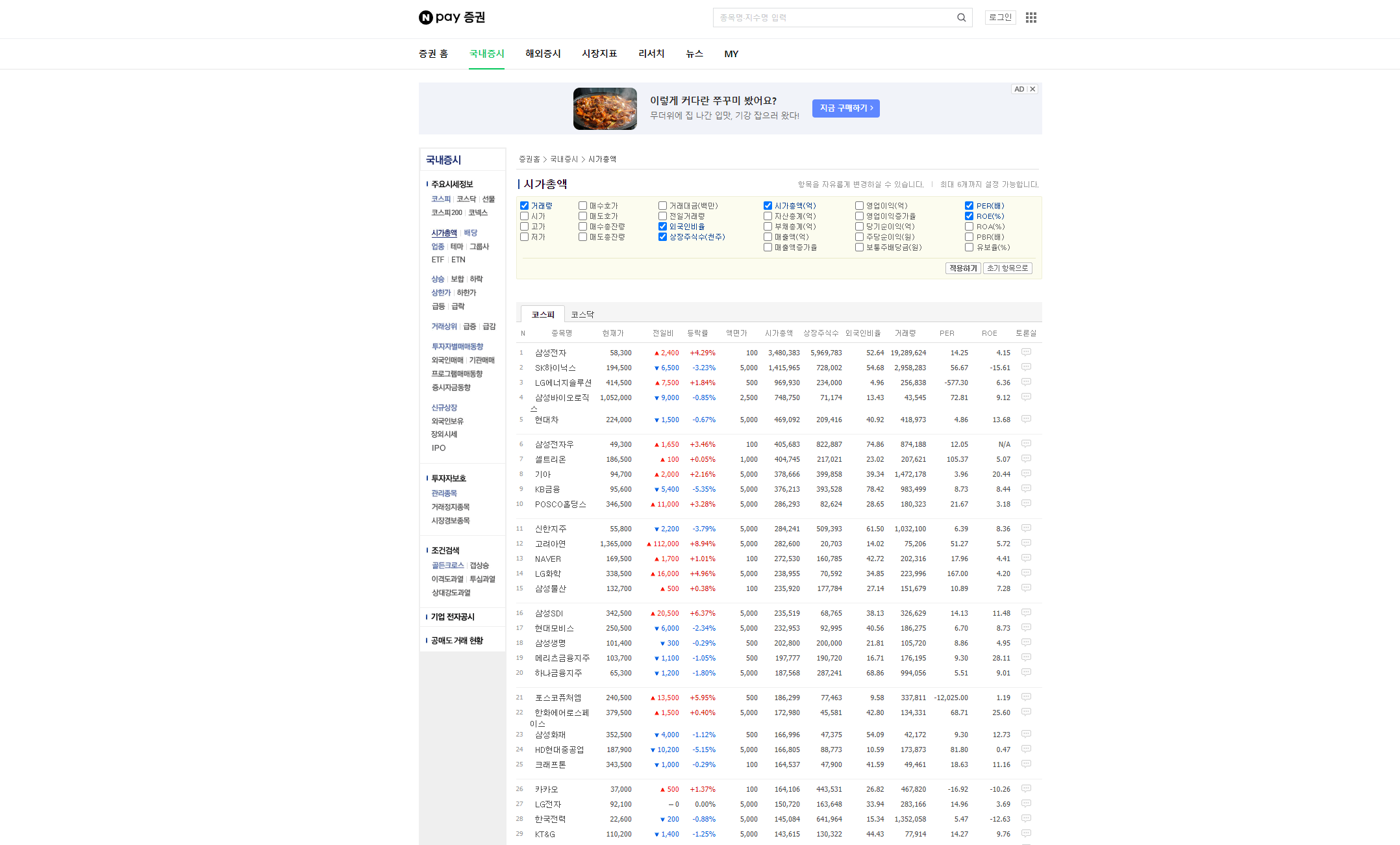 시가총액 : 네이버페이 증권