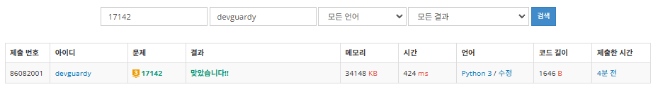 | 백준 낚시왕 [17143] 파이썬(Python) 코드 + 해설 (0) | 2024.11.04 |