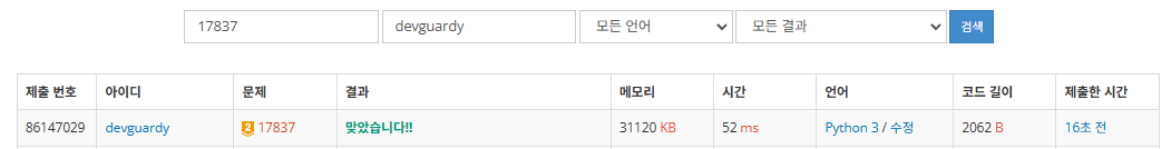 | 백준 이차원 배열과 연산 [17140] 파이썬(Python) 코드 + 해설 (0) | 2024.11.05 |