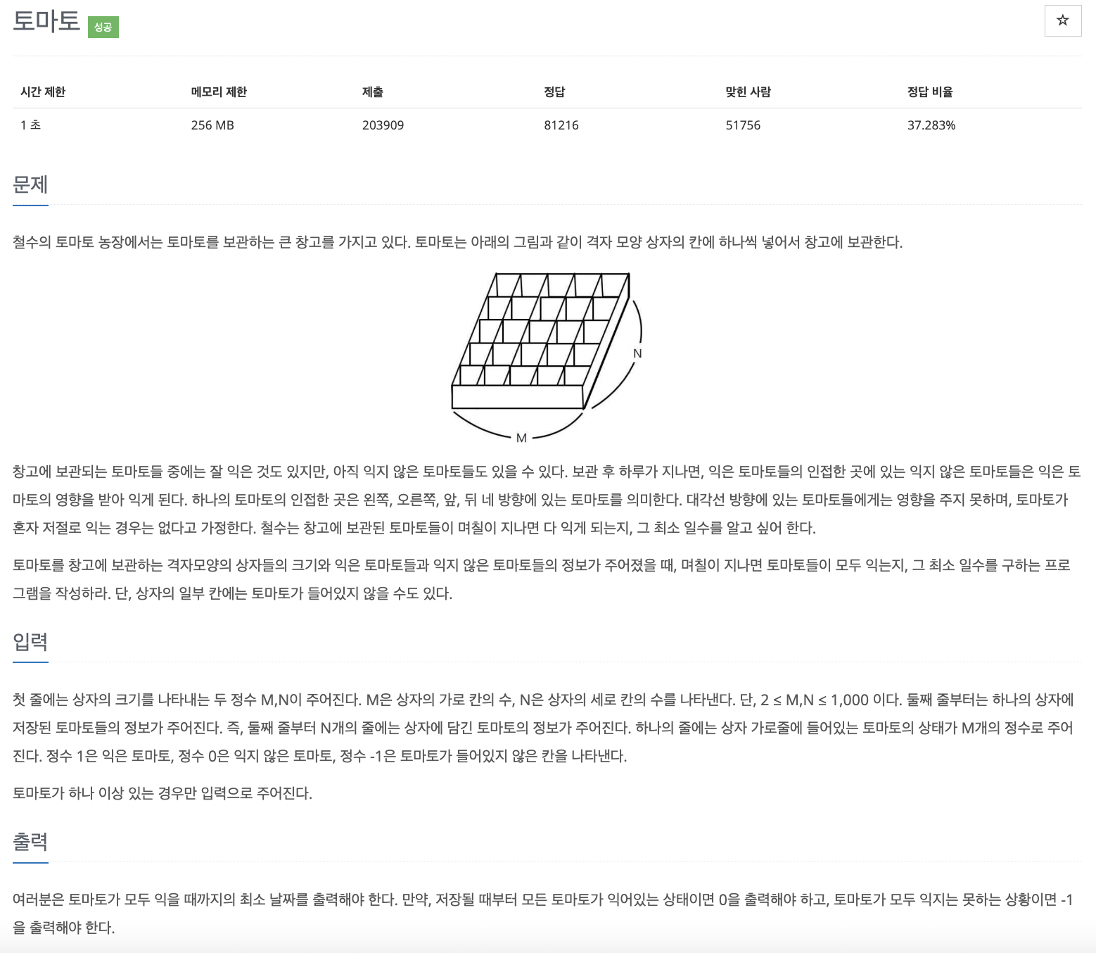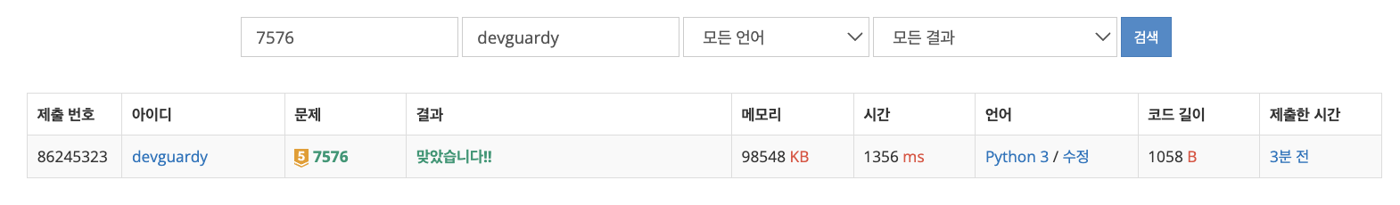 백준 7576 제출 결과