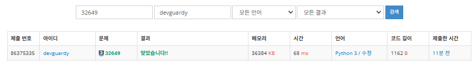 백준 32649 GLCCDM 파이썬(Python) 제출 결과