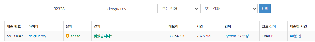 5. 백준 32338 하모니 제출 결과