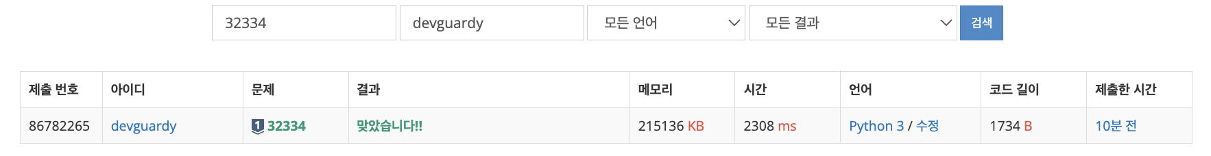 5. 백준 32334 자석 체스 제출 결과