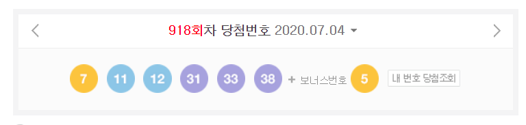 다음은 네이버의 918회차 당첨번호의 틀이다.