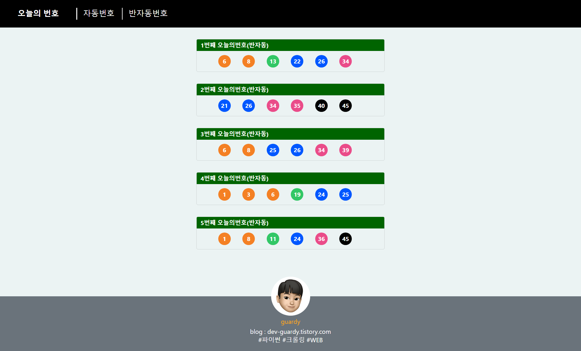완성된 홈페이지 주소 : https://dev-guardy.github.io/lotto/