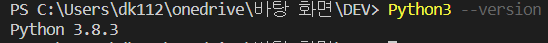 우선 python version이 맞는지 확인을 하자 터미널에 Python3 --version을 검색하자