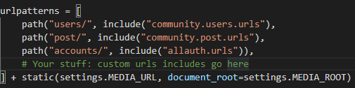 config -> urls.py를 수정해준다.
