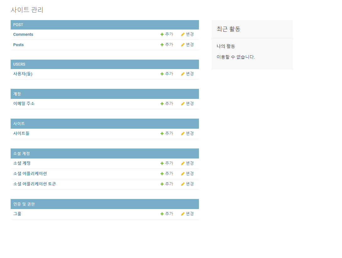 이번 글에서는 Admin 계정 설정과 Admin Page에서 Post APP을 확인해보도록 하겠다.