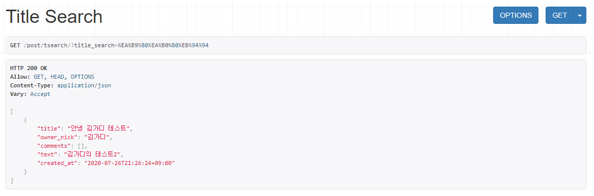 어쨌든 API가 정상적으로 search_text가 포함된 title을 찾는 것을 확인할 수 있다.