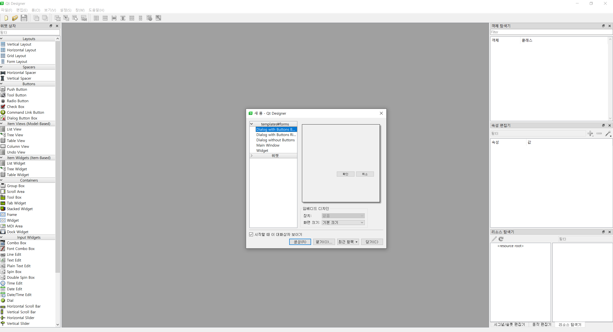 설치 후 designer.exe를 실행시키면 다음과 같이 뜬다.