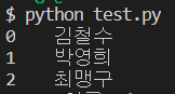 만약 이름만 list로 보고 싶다면 다음과 같이 코드를 작성하면 됩니다.